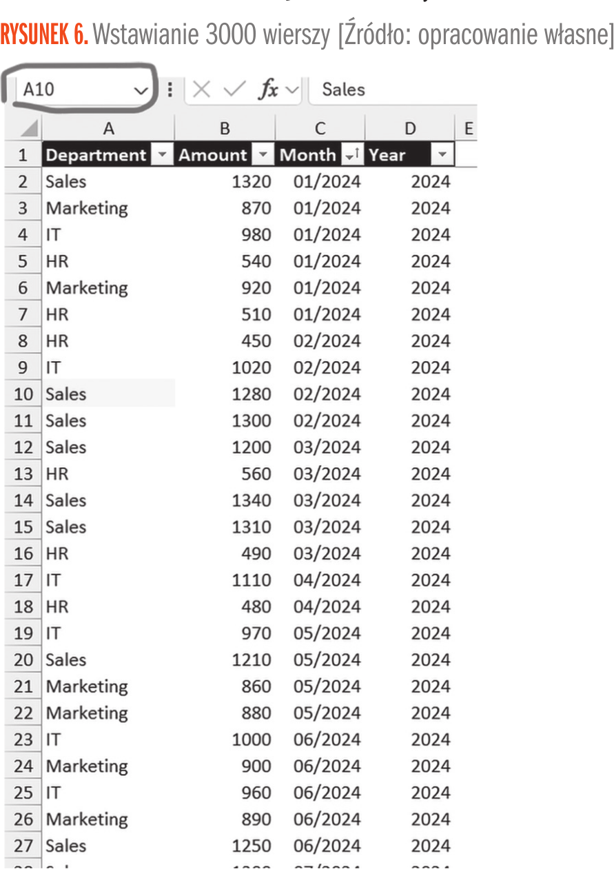 Excel wstawił dokładnie 3000 wierszy naraz.