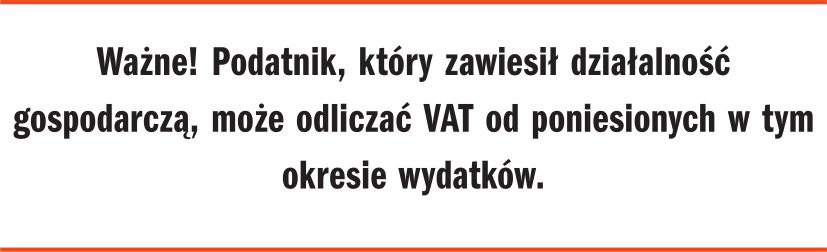 Prawo do odliczenia i zwrotu VAT u podatnika z zawieszoną działalnością