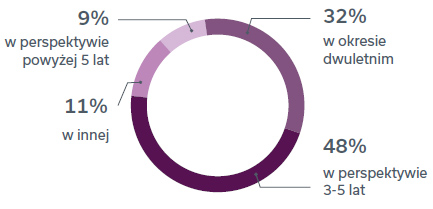 Zdecydowana większość przedsiębiorstw (blisko 90%) nie przekracza pięcioletniego horyzontu czasowego planowania strategicznego. Przykuwa uwagę relatywnie wysoki odsetek odpowiedzi wskazujących na okres 3-5 lat, na taki horyzont wskazała blisko połowa respondentów.