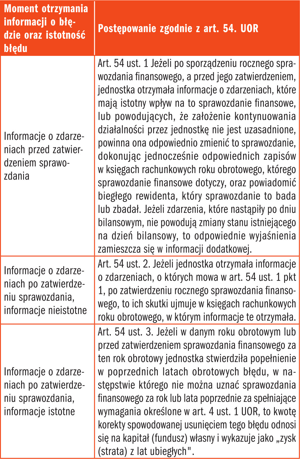 Ujęcie w księgach błędu [źródło art. 54. ust. 1 UOR]