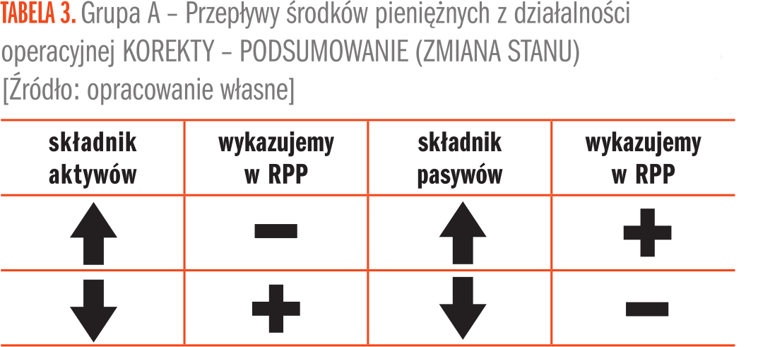 3. Doprowadzenia pozycji memoriałowych do „kasowych” poprzez uwzględnienie zmian stanu pozycji aktywów i pasywów (zapasów, należności, rozliczeń międzyokresowych, zobowiązań związanych z działalnością operacyjną).
